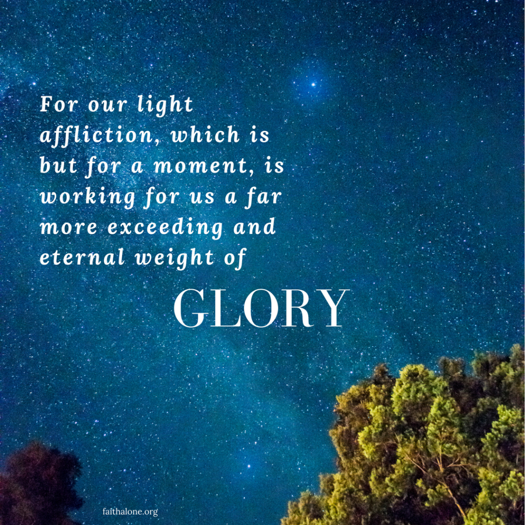 The reason Paul says that these 20 years are like a minute is because he is working for and “eternal” payday. What are 20 years compared to eternity? In addition, he was not working for an A in a course or to be able to serve in the military. What he was working for was eternal rewards which involved the “glory” of reigning with Christ. When seen in that light, such hardships were not only short lived, they were “light.”