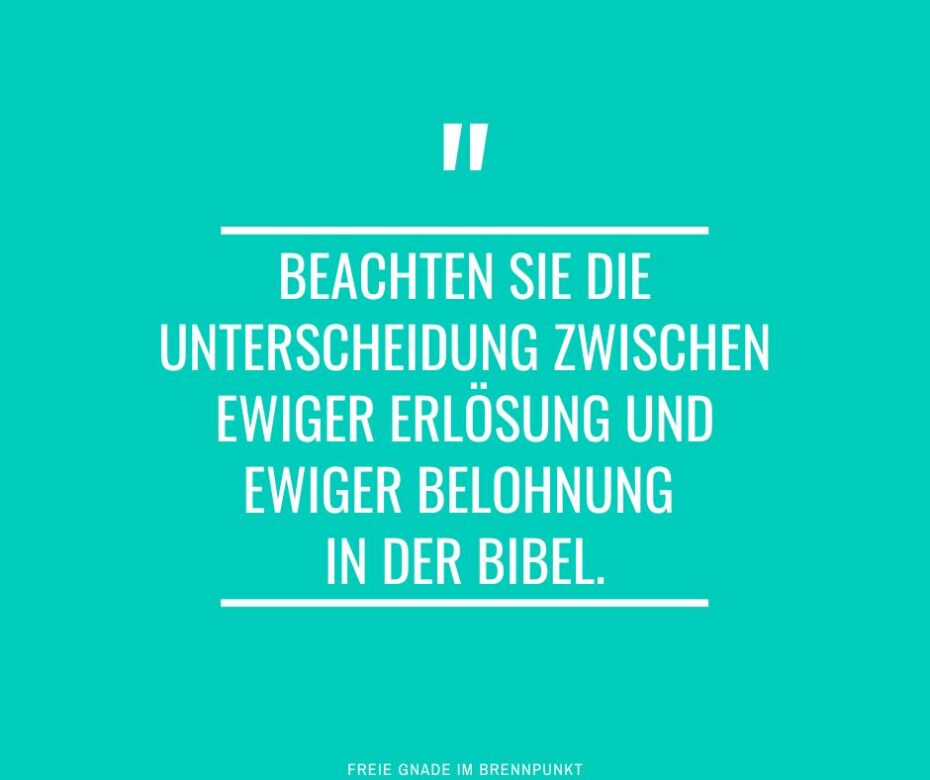 Es gibt kaum ein Buch in der Bibel, das nicht missverstanden wird, wenn diese Unterscheidung [zwischen ewiger Erlösung und ewiger Belohnung] nicht begriffen wird.