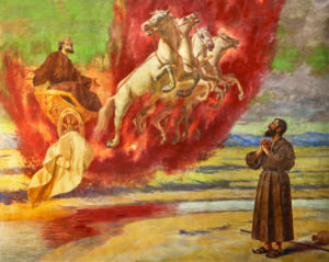 Elisha witnesses the rapture of Elijah—so astonished he keeps saying, “My father, my father—the chariots and horsemen of Israel.”